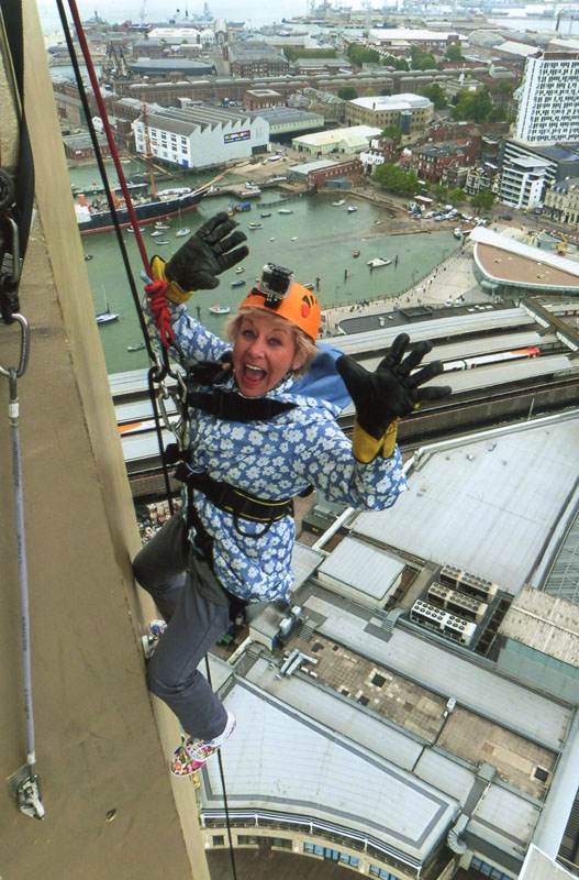 Producer Jan Hunt caught relaxing - performing a charity abseil down The Spinnaker Tower in Portsmouth to raise money for The Royal Marsden Hospital! |